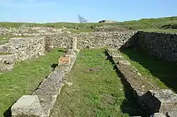 In the early 4th century the city walls were destroyed the when the Scythians led by Ateas, who often crossed the Dobrogea area for plunder, were eventually fought off by the Macedonians.[14] The result was Macedonia's domination of the Greek colonies of Dobrogea, and Lysimachus occupied the area after the death of Alexander.[15] Histria suffered significant damage towards the end of the 4th century possibly in the revolt of Pontic Greeks in 313 BC[16] against the Macedonians which failed.