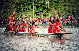 Hiyang Tannaba (Meitei: ꯍꯤꯌꯥꯡ ꯇꯥꯟꯅꯕ, lit. 'boat race')[1] is a traditional boat race ceremony performed in Manipur, India as a part of the religious festival of Lai Haraoba.[2][3] It is generally organized in the month of November at many places including Thangapat (moat).[1][2] The boats called Hiyang Hiren are regarded as invested with spiritual powers and the game is associated with religious rites.[1][4] The Meiteis believe that the worship of the Hiyang Hiren will bring protection from evil spirits.[1]