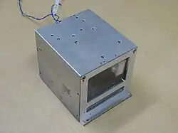 Hodoyoshi-4 is a Japanese micro-satellite launched in 2014. The satellite is built in 0.5x0.6x0.7m box-shape bus, optimized for piggy-back launch. All instruments are powered by solar cells mounted on the spacecraft body and two stub wings, with estimated electrical power of 50W.[1] For orbit-keeping, a "miniature" (5 kg dry weight) ion thruster with specific impulse of 1100 s and operating power of 20 W is integrated into the body.[2] The satellite was developed under the Funding Program for World-Leading Innovation R&D on Science and Technology.[3]