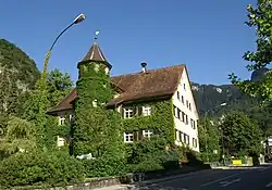The Renaissance palace stands at the foot of the Schlossberg and dominates the main square of town, the Schlossplatz. It was built from 1562 to 1567, according to plans by architect Martino Longhi the Elder at the initiative of Cardinal Marcus Sittich Hohenems (Altemps), architect who also designed the Cardinal’s palace in Rome. Religious wars and a plague decimated the population and devastated the area over the next century, ironically the time of the greatest power of the (Protestant) Counts of Hohenems, when they acquired Vaduz Castle from what was later to become Liechtenstein.[5] Two manuscripts of the Nibelungenlied were found in Hohenems, in 1755 and 1779, in the palace's library.[6]