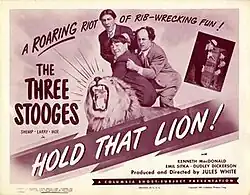 Hold That Lion! is a 1947 short subject directed by Jules White starring American slapstick comedy team The Three Stooges (Moe Howard, Larry Fine and Shemp Howard). It is the 100th entry in the series released by Columbia Pictures starring the comedians, who released 190 shorts for the studio between 1934 and 1959.