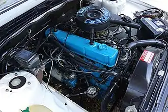 The blue motor was a development of the earlier red engine, and incorporated several improvements; the biggest of these changes was the complete redesign of the cylinder head. The head was upgraded to a 12 port design with individual ports for each cylinder, and a revised T5 camshaft.The blue motor was made in 2.85-and 3.3- litre versions. The crankshaft for the 3.3-litre engine now had counterweights on each throw, and stronger connecting rods were used. The crankshaft for the 2.85-litre remained the same as earlier crankshafts except that it had the main journal size increased to the same size as the blue 3.3 litre. A two-barrel Varajet carburettor was standard, as was a dual outlet exhaust manifold and a Bosch HEI distributor.