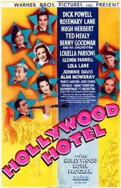 Hollywood Hotel is a 1937 American romantic musical comedy film, directed by Busby Berkeley, starring Dick Powell, Rosemary Lane, Lola Lane, Hugh Herbert, Ted Healy, Glenda Farrell and Johnnie Davis, featuring Alan Mowbray and Mabel Todd, and with Allyn Joslyn, Grant Mitchell and Edgar Kennedy.