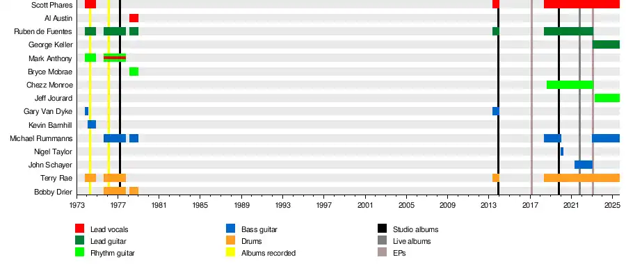 Ruben De Fuentes | 1973–1978, 2013, 2018–2023 | Lead guitar, songwriter |