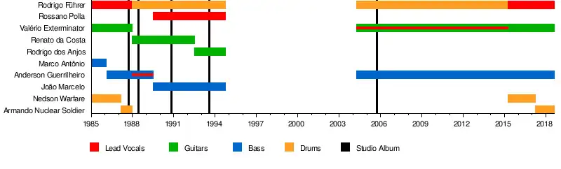 Past members | Marco Antônio (bass) Nedson Warfare (drums) Rodrigo Führer (drums, vocals) Armando Nuclear Soldier (drums) Renato da Costa (guitar) João Marcelo (bass) Rossano Polla (vocals) Rodrigo dos Anjos (guitar) |