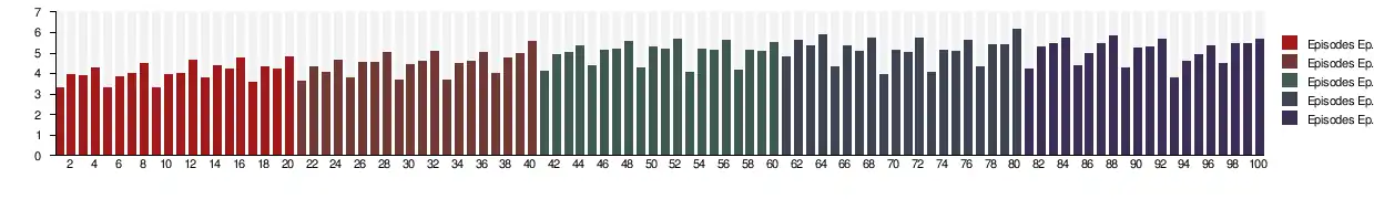 Ep.81-100 | 4.228 | 5.306 | 5.483 | 5.724 | 4.387 | 5.002 | 5.475 | 5.838 | 4.282 | 5.259 | 5.289 | 5.673 | 3.794 | 4.619 | 4.907 | 5.350 | 4.478 | 5.484 | 5.446 | 5.676 |