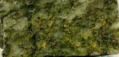 The gold at Homestake is almost exclusively confined to the Homestake Formation, an Early Proterozoic layer with iron carbonate and iron silicate. The original 20–30 m thick Homestake Formation, has been deformed and metamorphosed, resulting in upper greenschist facies of siderite-phyllite, and lower amphibolite facies of grunerite schists.[18]: J15