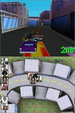 The game's main mode is called Wizard Circuit, where the different Homies characters race in a competition set up by Vato Wizard, who promises to grant a single wish to whoever wins the cup.[2][5] To progress through the mode, players must place first in a series of races.[6] The game also has a multiplayer mode that supports up to eight players via a local wireless connection, although multiplayer with up to four players was also possible with the Nintendo Wi-Fi Connection.[2]