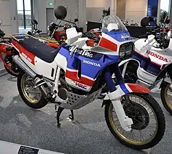 The Honda CRF1000L is a 1000 cc dual-sport motorcycle manufactured by Honda. It became available in the UK in late 2015 and early 2016 in the US, reviving their Africa Twin line. The motorcycle is developed as a modern interpretation of its predecessors, the XRV 750 and XRV 650, based on the NXR-750, which won the Paris-Dakar rally four times in the late 1980s. The original V-twin Africa Twin was first sold in Europe from 1988 to the final production year of 2003 but was never brought to the United States. The CRF1000L is also seen as a response by Honda to the heavier, on-road-focused adventure touring motorcycles such as the BMW R1200GS, Ducati Multistrada, and Triumph Tiger Explorer, offering a lighter, more off-road-focused machine.