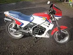 The Honda MVX250F is a Honda motorcycle with a water-cooled two-stroke V3 engine. New Zealand and Switzerland are two of the few countries in the world outside Japan where the MVX 250 was sold brand new through Honda motorcycle dealerships. The engine is mounted in the frame with the two outer cylinders facing horizontally forward and the central cylinder vertical.