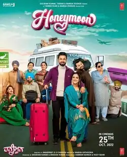 Honeymoon is a 2022 Indian Punjabi-language, comedy-drama film directed by Amar Preet Chhabra.[1][2] The film is produced by Bhushan Kumar, Harman Baweja, Krishan Kumar and Vicky Bahri. The film stars Gippy Grewal,[3] Jasmin Bhasin,[4] Karamjit Anmol, Nasir Chinyoti and Naresh Kathooria in leading roles with Nirmal Rishi, Harby Sangha, Ashok Tangri in supporting roles . The film had its international premiere on 25 October 2022 in Ireland, United kingdom.[5]