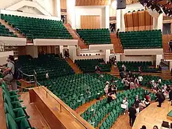 - The Concert Hall, with 2,019 seats, is an oval two-tiered auditorium finished with high quality oak, and includes an adjustable acoustic canopy and curtains. It is the home of the Hong Kong Philharmonic Orchestra. It houses an 8,000-pipe pipe organ, the largest in Asia, built by Austrian firm Rieger Orgelbau. It has been recorded by Christopher Herrick on Organ Fireworks VIII.[7]