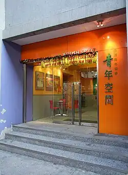 The Building accommodates the Hong Kong Federation of Youth Groups Head Office, as well as some sub-units of the Social Welfare Department and head offices of 9 other social service agencies and organisations. It is equipped with various facilities and amenities, including a 434-seat auditorium, two multi-function theatres, a multi-media youth and children’s learning centre, meeting rooms,[16] as well as the Café 21, the first Youth Social Enterprise Project launched by the Federation.[17] The facilities are available to social service organizations and the public for booking.