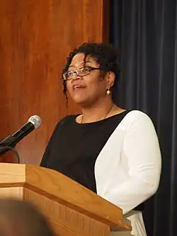 Honorée Fanonne Jeffers (born 1967) is an American poet and novelist, and a professor of English at the University of Oklahoma. She has published five collections of poetry and a novel. Her 2020 collection The Age of Phillis reexamines the life of American poet Phillis Wheatley, based on years of archival research;[1] it was longlisted for the 2020 National Book Award for Poetry, and won the 2021 NAACP Image Award for Outstanding Literary Work – Poetry.[2] Her debut novel, The Love Songs of W.E.B. Du Bois, was published by HarperCollins in 2021.