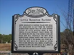 Before it was known as Hope Mills, the area was known as Little Rockfish Village and as Hope Mills Number One.