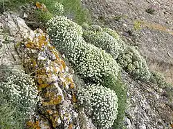 Hormathophylla spinosa, formerly Alyssum spinosum, the spiny madwort, is a species of flowering subshrub in the genus Hormathophylla of the family Brassicaceae, native to open rocky sites in south-eastern France and southern Spain. It forms a compact mound up to 30 cm in height. Dense spiny branches of tiny, toothed grey-green leaves bear racemes of white flowers at the tips in early summer.[1]