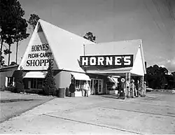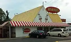 Horne's was a Southern-style restaurant chain located primarily in the Southeast and Southern United States along major highways. It was headquartered in Bayard, Florida. At the chain's peak there were over 60 Horne's locations, but today only one original restaurant remains.[2] Many restaurant locations featured diner-style sit-down service as well as lodging, Texaco gas stations, gift shops, and an ice cream bar, creating a one-stop shop atmosphere.[3] Since many locations were on highways, many Horne's restaurants were open 24 hours a day, 7 days a week.[4]