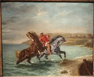 Horses Leaving the Sea or Horses Coming Out of the Sea is an 1860 oil on canvas painting by the French artist Eugène Delacroix, now in The Phillips Collection in Washington, D.C.[1] Relatively atypical in Delacroix's oeuvre, it shows two horses leaving the sea led by a Moroccan rider, with the town of Tangiers in the background. It was produced for the same art dealer as Arab Horses Fighting in a Stable and is usually regarded as a pair with that work.[2]