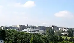 The Horst-Schmidt-Kliniken in the district of Dotzheim is the largest hospital complex in Wiesbaden founding in 1879, owing to its affiliated institutions and 1,027 beds. In 1982 the new buildings were relocated to the present location.[1]