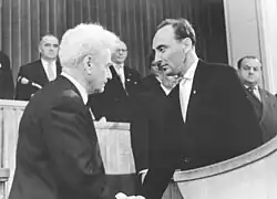 Initially a candidate member since 1958 (V. Party Congress), he become a full member of the Central Committee of the SED in 1959, serving until its resignation in December 1989.[1][2][3][4] He additionally became member of the Volkskammer in 1963 and the State Council, the GDR's collective head of state,[6] in 1960, though he left it at the start of the Honecker era in 1971.[1][2][4]