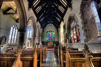 By the end of the 17th century, through neglect the chapel has fallen into a ruinous state. Throughout the 19th century under the care of Philip Hayman Dod, the master of the hospital, the chapel was restored. In 1829 an aisle was built on its north side, the former wall being replaced by a three bay arcade, a stone bell-cote containing one bell was placed above the east end of the north aisle. The gallery in the north aisle was removed, and the arcade was rebuilt in a more orthodox Gothic style. Medieval windows in the south wall of the chapel also appear to have been renewed. The chapel was reseated, and most of the 17th- and 18th-century fittings, which had included a three-decker pulpit, were cleared away. In 1870 the walls and nave were raised, buttresses were added to the outside of the south wall and a new high pitched roof was installed.[4]