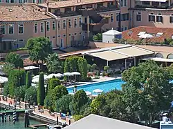 The Hotel Cipriani is a deluxe hotel on the island of Giudecca in Venice, northern Italy. It is reached by hotel launch from St Mark's Square, a five-minute journey across the lagoon.[1] Long considered one of the leading luxury hotels of the world, its room rates begin at USD $1,400 per night.