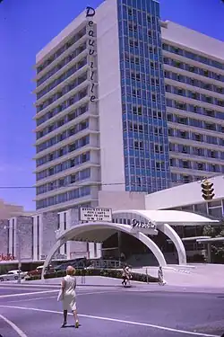The Deauville Beach Resort at 6701 Collins Ave, Miami Beach, FL 33141, was a celebrated beachfront hotel on Miami Beach. Built in the MiMo style in 1957, it was designed by Melvin Grossman.[1]