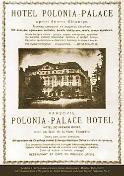 - ^ a b c d e Louis Gerber, Polonia Palace Hotel History, photos and review at Cosmopolis.ch, January 17, 2014.
