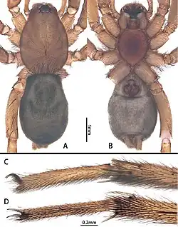 - ^ a b c d e Liu, Bo (2024). "Hotwheels gen. nov., a new ground spider genus (Araneae, Gnaphosidae) from southwest China". ZooKeys (1189): 337–347. doi:10.3897/zookeys.1189.115996. PMC 10836147. PMID 38314110. Retrieved 2024-01-24.