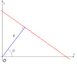 The simplest case of Hough transform is detecting straight lines. In general, the straight line y = mx + b can be represented as a point (b, m) in the parameter space. However, vertical lines pose a problem. They would give rise to unbounded values of the slope parameter m. Thus, for computational reasons, Duda and Hart[6] proposed the use of the Hesse normal form