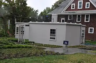 The House at 130 Mohegan Avenue, also known as Rusty, the House of Steel or Steel House, is a prefabricated, modular, International Style house in New London, Connecticut, United States. [2] The House was designed by Howard T. Fisher, who founded General Houses, Inc. in 1932. Winslow Ames, a professor of art history at Connecticut College and the art director of the Lyman Allyn Museum, had the home built after attending the Century of Progress Exposition in Chicago. The House is a single story 21 feet (6.4 m) by 37 feet (11 m) rectangular steel prefabricated home that rests upon a concrete slab. It originally had a flat roof and included an attached garage. Throughout the years, the house has undergone significant alteration, including the addition of a gable roof.