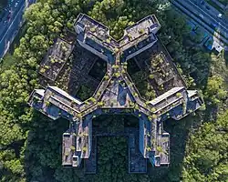 Construction of the hospital began in 1980 and was suspended in 1985.[1] Since then, the building remained unfinished and dilapidated until its demolition in 2018.