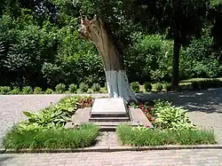 The park has preserved a well, the site of Skovoroda's first burial, and the manager's office building. In 1972, a monument by Ivan Kavaleridze and a memorial sign by Liubov Zhukovska and Dmytro Sova were installed.[13][14] In 2007, an alley of sculptures was created.[15]