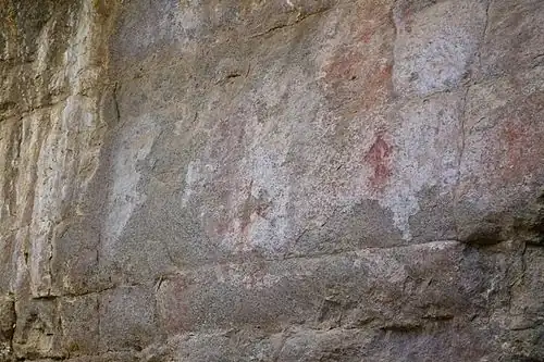 Over the ravine stones are the cave paintings, which are difficult to see, these are dispersed over the "Cerro La Mesa" behind the pyramid. It is sad that graffiti has reached them, making them in some points confusing. Also white crosses are painted in the stone by current inhabitants of the place, namely to scare away witches and nahuales.[3]