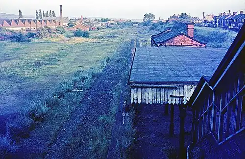 Hucknall Central was of the larger 'town' variety of stations on the Great Central main line, with access to the island platform being via a footbridge from the booking hall which sat on the eastern side of the line. More comprehensive passenger facilities were provided at Hucknall, similar to Loughborough Central and Rugby Central stations, though not quite as lavish as in those cases.[1] The station was constructed circa 1896–1898 by the contractors Logan and Hemmingway.[2][3]