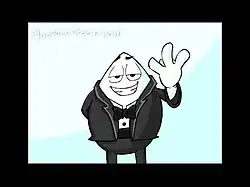 ![]() A screenshot from a cartoon short depicting an egg spoofing James Bond. | |
