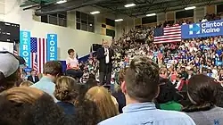 On August 1, 2016, Democratic vice-presidential nominee and Senator from Virginia Tim Kaine addressed a crowd in the new school's gymnasium as part of the Clinton-Kaine campaign.[3]