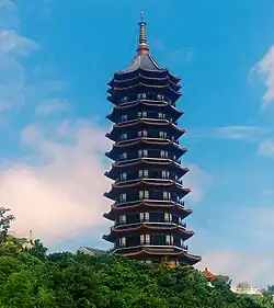 The Guanyin Hall enshrines a 2.7-metre (8 ft 10 in) high statue of Guanyin and houses 123 stone carved statues of Guanyin based on paintings from famous painters of Tang, Song, Yuan, Ming and Qing dynasties.[1][2]