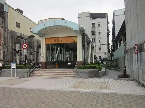 The Taipei Metro Huilong station is a station on the Zhonghe–Xinlu line located in Xinzhuang, New Taipei City, and the Huilong section of Guishan District, Taoyuan City, Taiwan. It is the western terminus of the Xinzhuang Line and opened on June 29, 2013.[2] It will be a terminus on the Wanda–Zhonghe–Shulin line in June 2031.