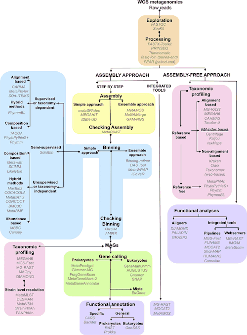 - ^ Oulas A, Pavloudi C, Polymenakou P, Pavlopoulos GA, Papanikolaou N, Kotoulas G, et al. (2015). "Metagenomics: tools and insights for analyzing next-generation sequencing data derived from biodiversity studies". Bioinformatics and Biology Insights. 9: 75–88. doi:10.4137/BBI.S12462. PMC 4426941. PMID 25983555.