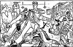 - Ákos Garay (Pusztaapáti, October 3, 1866 – Budapest, January 25, 1952)[16] painter, graphic artist, ethnographer. From 1883 he drew caricatures for most of the humor magazines (Kakas Márton, Bolond Istók, Fidibusz, Üstökös, Urambátyám, Magyar Figaró, Herkó Páter), Borsszem Jankó published his works for over 20 years. His early drawings were in a realistic style, later used distortion as an instrument for caricatures and humorous pictorial stories.[17] One of the fundamental artists who helped Hungarian pictorial stories to reach its classic stage.[18]