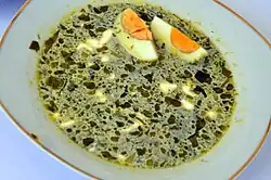Sóskaleves | Made from sorrel leaves in a broth, often with boiled eggs as well. Similar to green borscht, but thicker. | |