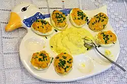 Villásreggeli or brunch (literally 'breakfast with fork') is a more luxurious big breakfast given on special occasions or holidays. Often guests are invited. Deviled eggs, cold steak, cold salads, salmon omelettes, pancakes, a spicy cheese spread made with sheep milk cheese called körözött, caviar, foie gras, fruit salads, compote, fruit yogurts, fruit juices, champagne and pastries, cakes and cookies may be served.