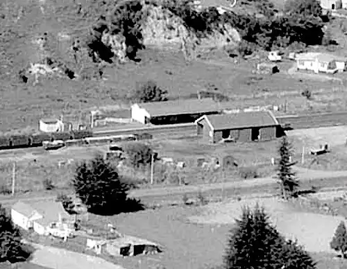 The station site was identified in 1885 and a contract to build the station signed on 10 July 1885. Gifford & O'Connor completed the buildings by 24 December 1887, though a 1963 report said it was built in 1904. From 1891 to 1903 there was a Post Office at the station.[3]