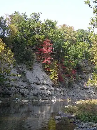 The West Branch is 54.5 miles (87.7 km) long.[1] It rises about 4 miles (6.4 km) south of Greenwich and four miles east of Shiloh, near the intersection of Gilger Road and Noble Road in northern Richland County's Blooming Grove Township. This is within a few miles of the headwaters of both the southwest branch of the Vermilion River (which also flows north to Lake Erie) and Shipp Creek, which is part of the Ohio River watershed via the Black Fork, Mohican, Walhonding, and Muskingum rivers. The West Branch of the Huron flows north and west from Blooming Grove Township through Huron County's Ripley Township, then back into Richland County's Cass Township and into Plymouth. It is here where the river bends north to flow across the Richland/Huron county line into Huron County's New Haven Township and into New Haven. It passes to the east of Willard, although other tributaries rise north of Willard. Still in Huron County, the West Branch continues north through Greenfield Township, Peru Township, and Ridgefield Township. The West Branch continues north into Monroeville and through the balance of Ridgefield Township. Next, the river crosses from Huron County into Erie County and then bends in an easterly direction through southern Oxford Township before reaching the confluence with the East Branch in the Milan State Wildlife Area.