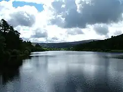The River Dodder, which also overflowed, nearly exceeded the reservoir dam in Bohernabreena in South Dublin (flooding on the Dodder has been a periodic problem for centuries). Additional spillways were later added in the event of another similar flood.[33] In the Wicklow Mountains, the rainfall resulted in significant runoff, which caused erosion along the Cloghoge River.[34] The passage of the storm left heavy crop damage, part of a larger period of poor agriculture in the country.[31] Throughout the country, the storm caused at least thirteen deaths, four of which were drownings in flooded rivers; one death was caused by a heart attack while being evacuated from flooding.[30] Two months after the storm struck, the government of Ireland allocated IR£6,449,000 (1986 IEP, $8,650,000 1986 USD) to repair roads and bridges damaged by the weather system.[35]