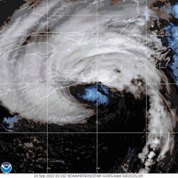 ![]() True-color imagery of Fiona taken west of Bermuda on September 22 | |
