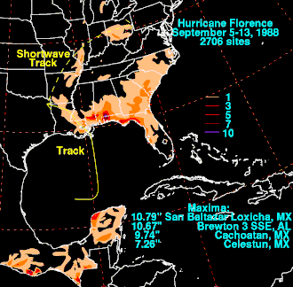 : CS1 maint: multiple names: authors list (link) - ^ a b c d David Roth (2005). "Rainfall Summary for Hurricane Florence". Hydrometeorological Prediction Center. Retrieved 2007-03-04.