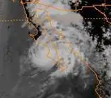 Due to Hilary's proximity to Mexico on August 20, hurricane watches were issued for much of the southern coastline; however, they were later discontinued. Once the system began its northward track, further watches and warnings were issued for the Baja California Peninsula and the Gulf of California coastline.[14] Heavy rains, with a maximum recorded amount of 11.35 in (288 mm) in Derivorda Jale, Colima, were accompanied the storm. Along the Baja California Peninsula, a statewide rainfall total of 4.33 in (110 mm) fell in Huerta Vieja. However, no damage or loss of life took place.[13][15] Winds along the peninsula were strong, though not as strong as Hurricane Calvin, a hurricane which struck the peninsula during July 1993.[16]
