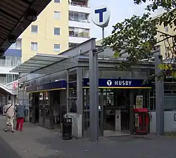 Husby is a station on the blue line of the Stockholm metro, located in the district of Husby, northern Stockholm. The station was inaugurated on 5 June 1977 as part of the extension from Hallonbergen to Akalla.[2] The distance to Kungsträdgården is 15 km (9.3 mi).